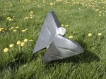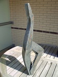 2005Dit beeld is gemaakt van een stoeptrede (Belgisch hardsteen) van een 18de eeuws pand uit Schiedam. De steen is doormidden gebroken en uit het bovenste gedeelte is een huis gehakt dat staat op het breukvlak van de onderste helft. Het staat zo stevig als een huis